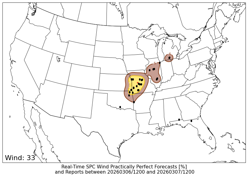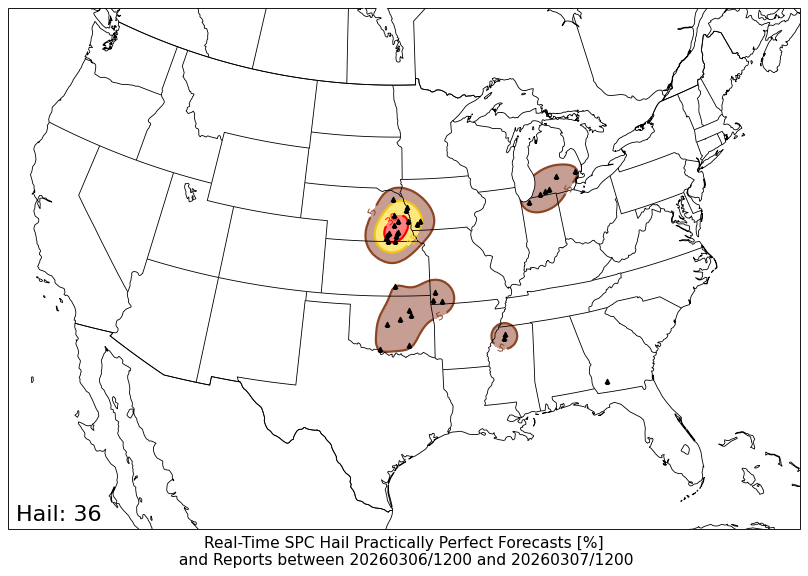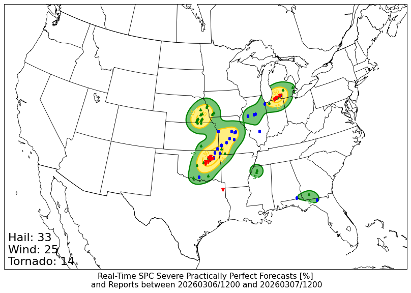 24-h SPC Storm Reports centered on 20260307/0000