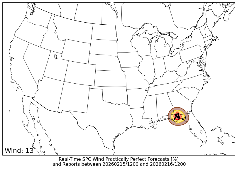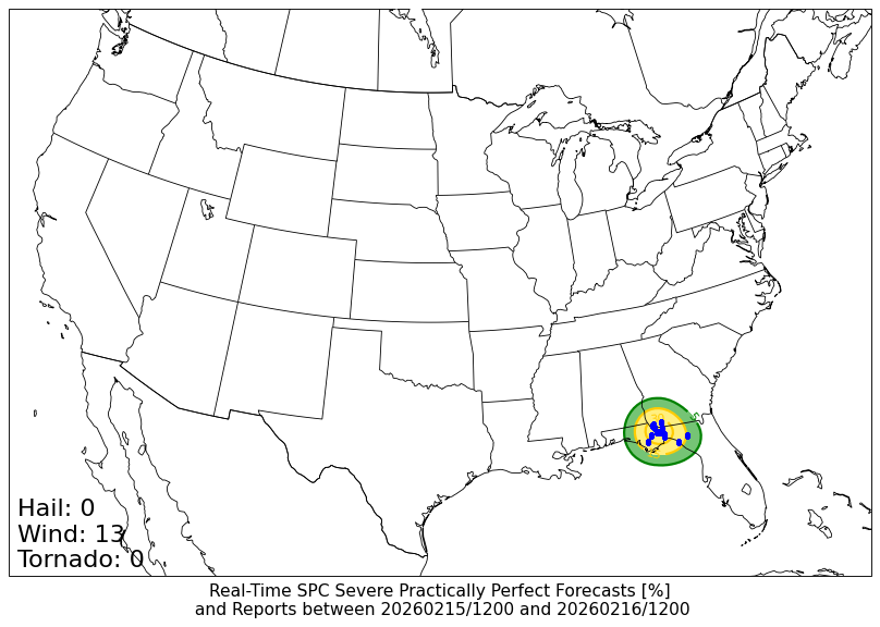 24-h SPC Storm Reports centered on 20260216/0000