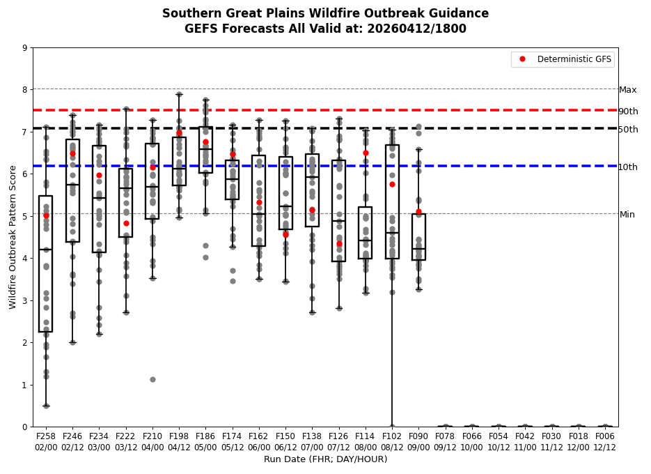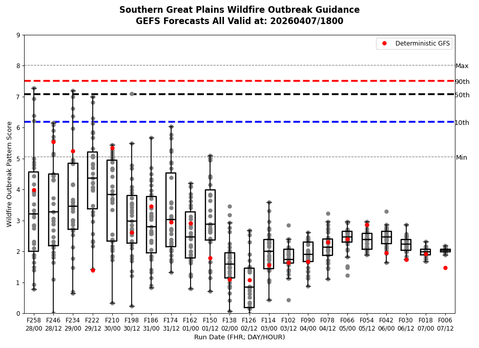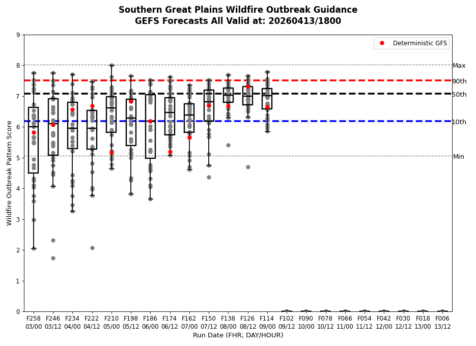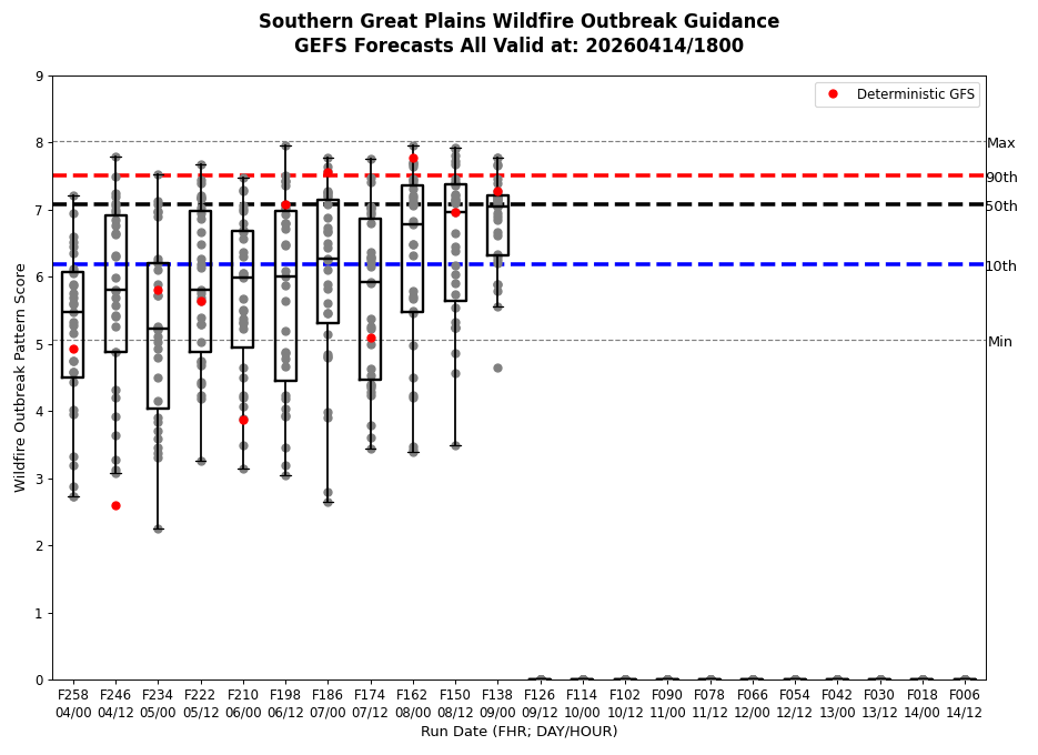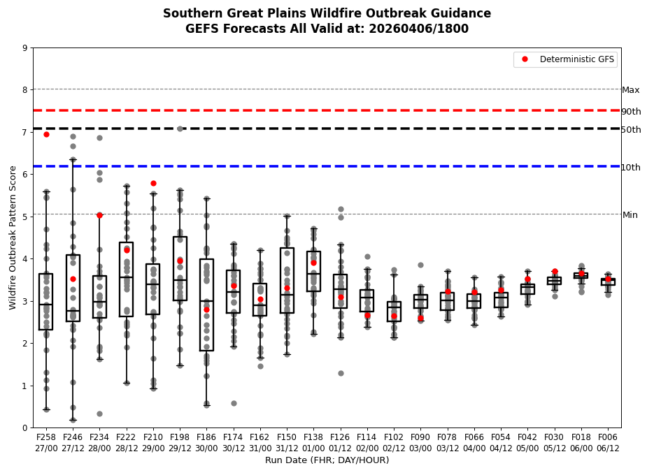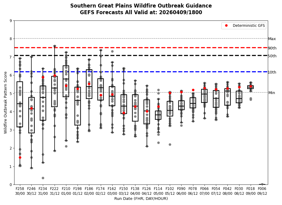 A Statistical Comparison Between the 30-member GEFS Model Guidance and the Southern Plains Wildfire Outbreak Conceptual Model