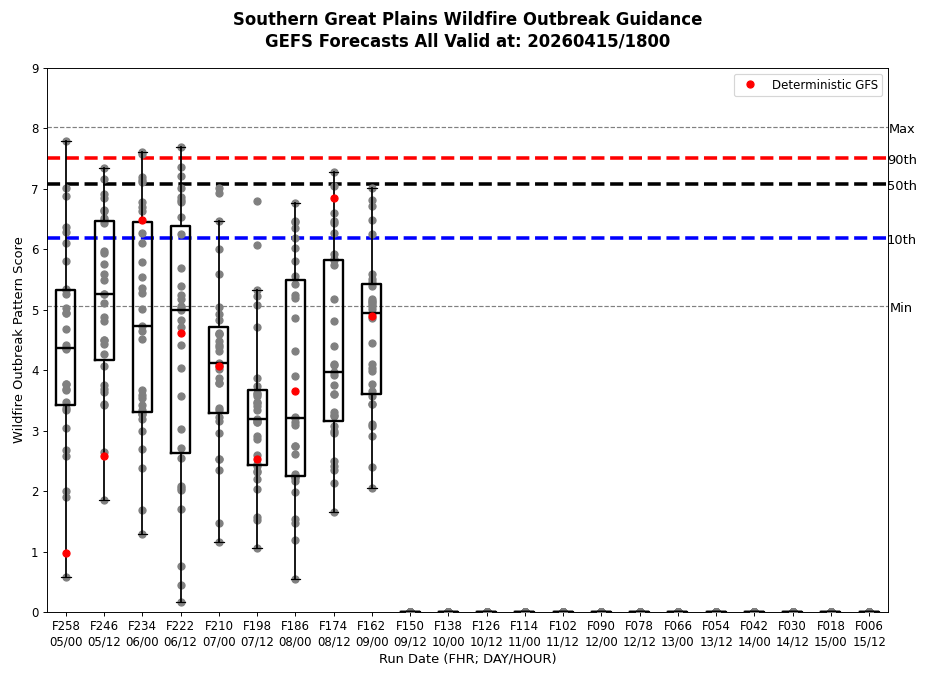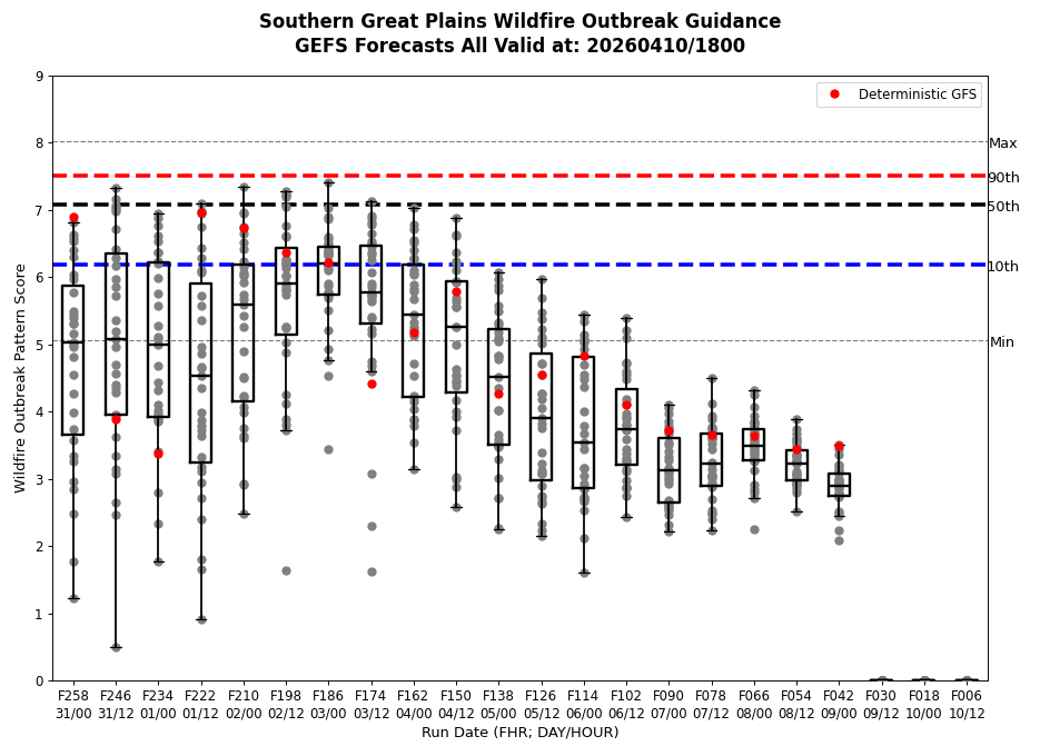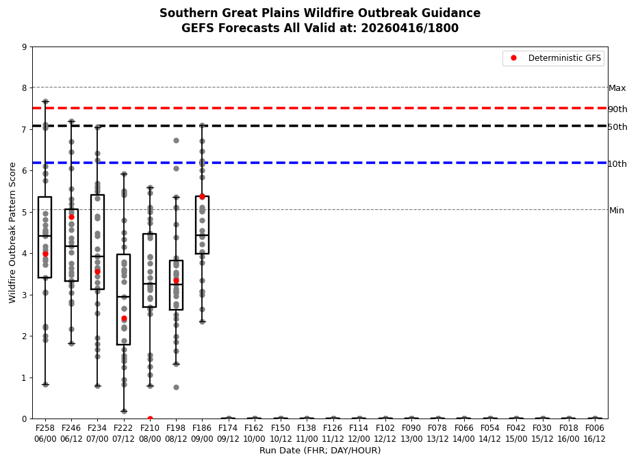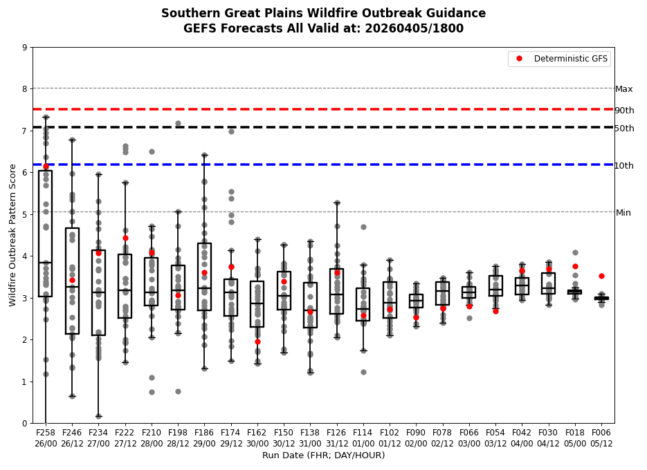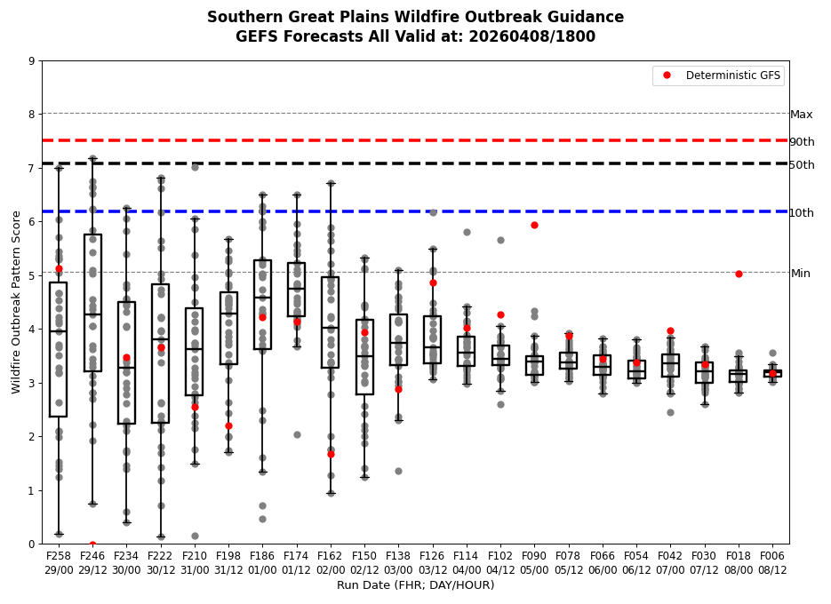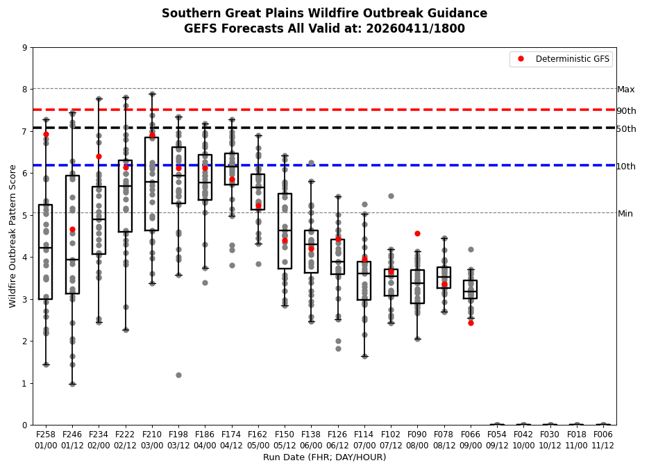 A Statistical Comparison Between the 30-member GEFS Model Guidance and the Southern Plains Wildfire Outbreak Conceptual Model