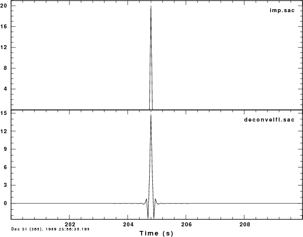 Consider the output due to an impulse in ground velocity, which is created by the gsac commands: