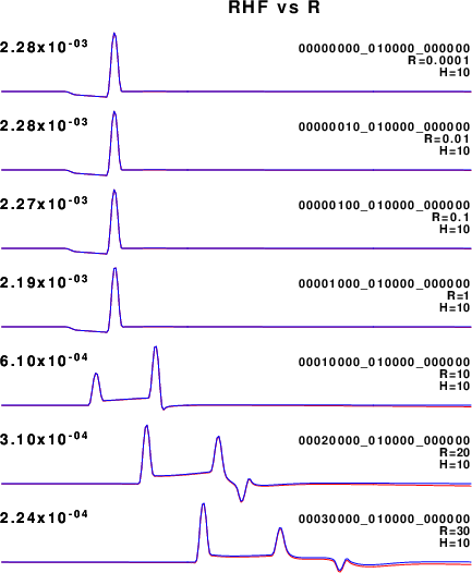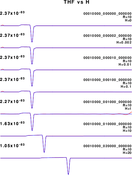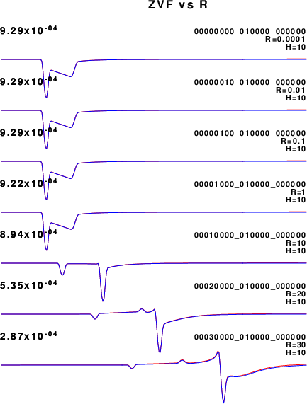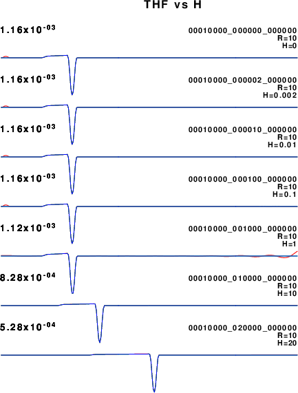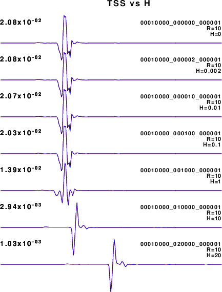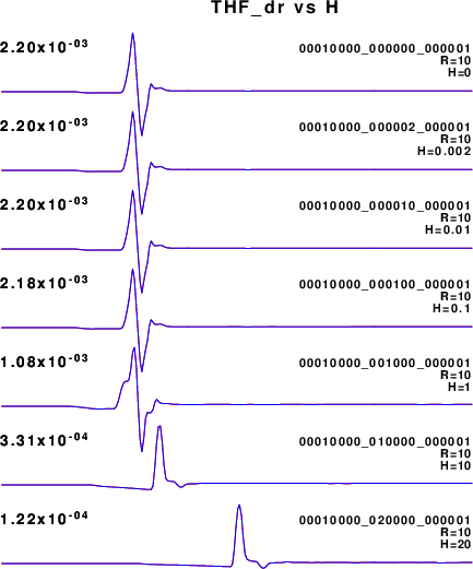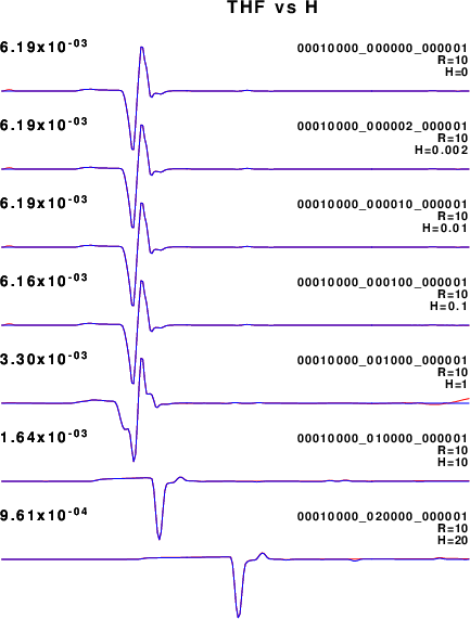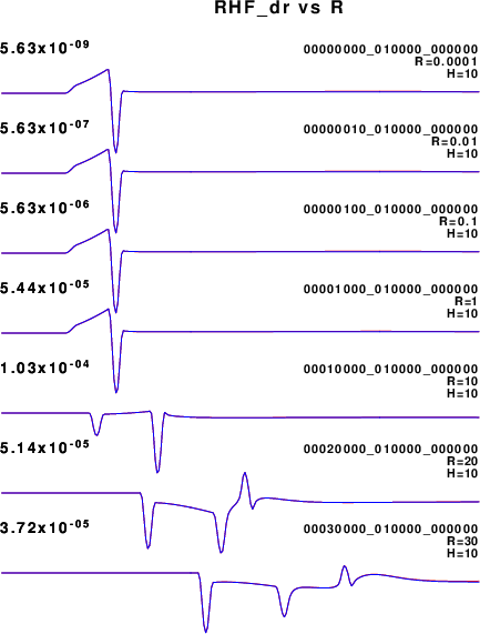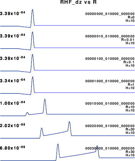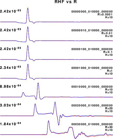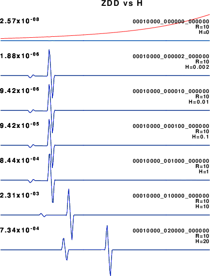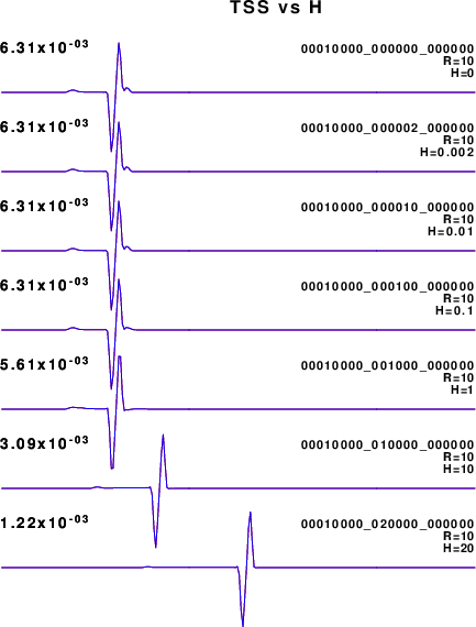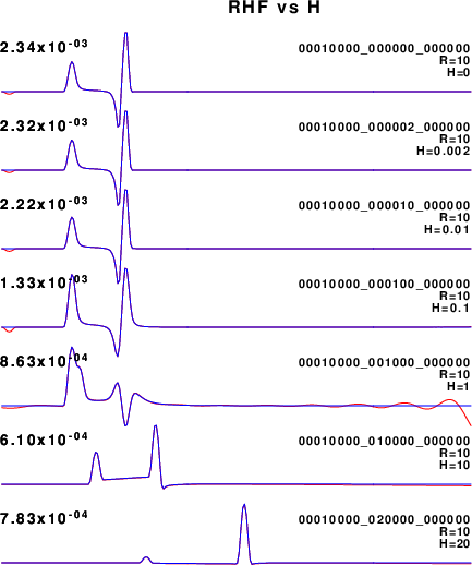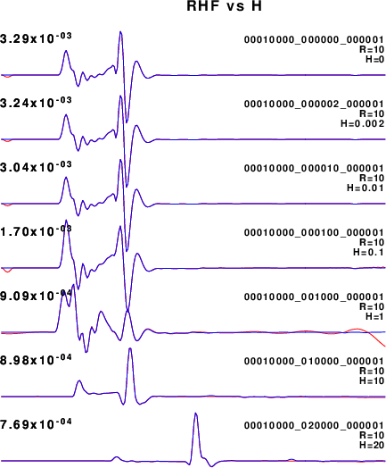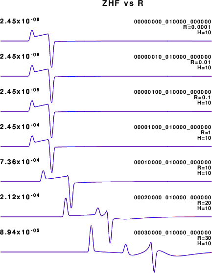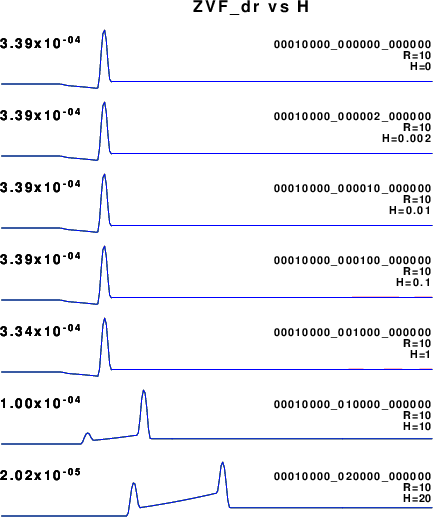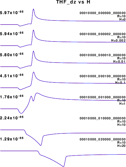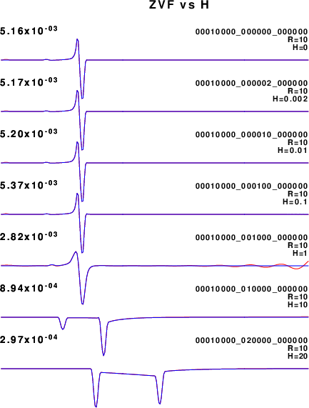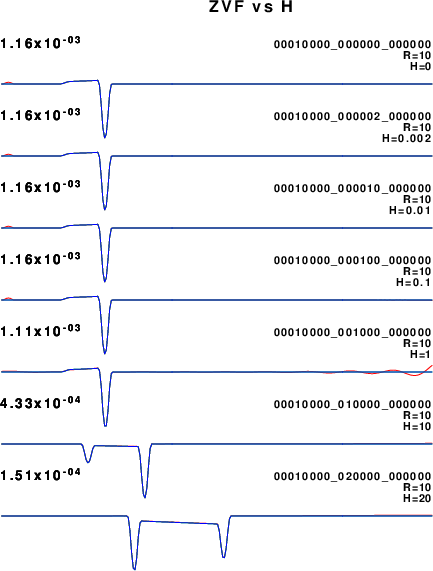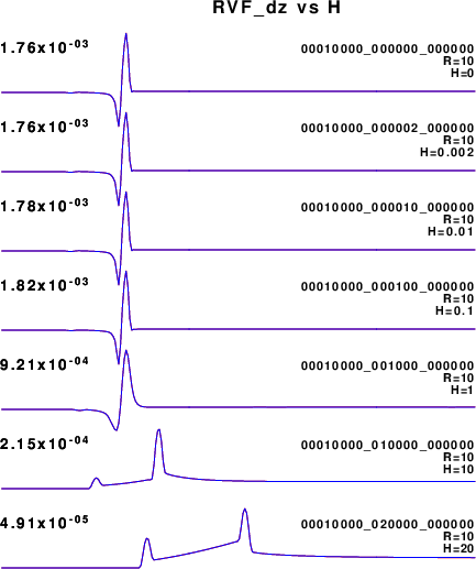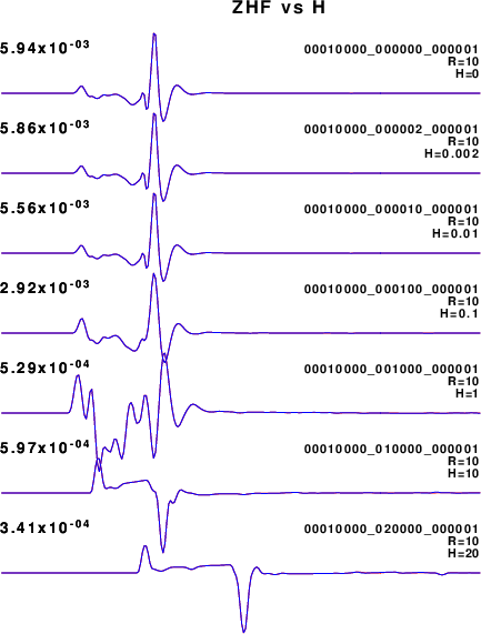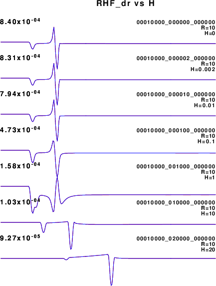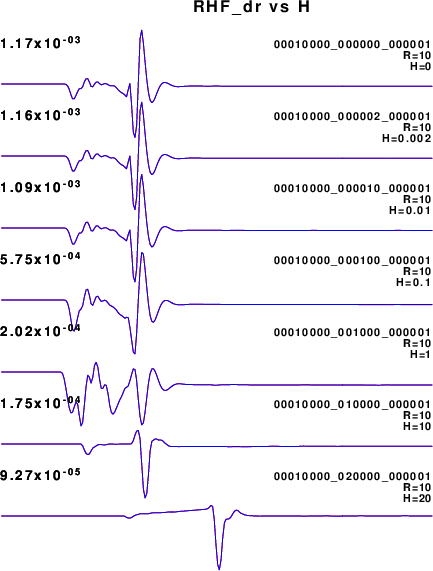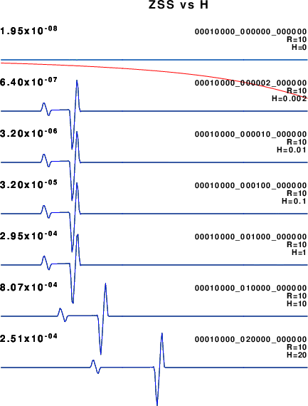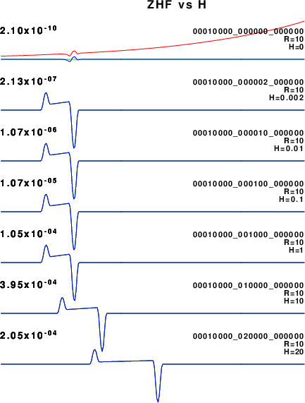For fixed R, sshspec96strain is much better than hspec96strain as H → 0. The RDS and TDS at H=0 look noisy, but note that the4 amplitudes are very small. The d/dz of ZHF has some noise at about H=1 and the ZDS at H=0 (but is small). Both codes do well for the d/dr.