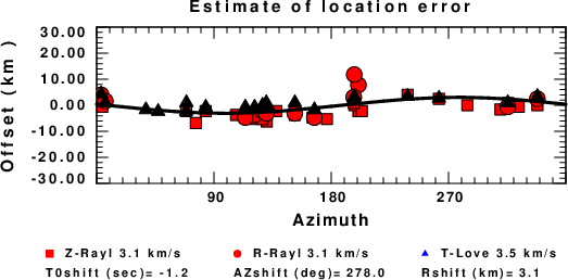 A check on the assumed source location is possible by looking at the time shifts between the observed and predicted traces. The time shifts for waveform matching arise for several reasons: