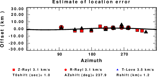 A check on the assumed source location is possible by looking at the time shifts between the observed and predicted traces. The time shifts for waveform matching arise for several reasons: