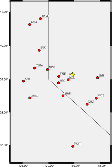 USGS/SLU Moment Tensor Solution ENS 2025/08/09 07:14:12.0 39.13 -119.08 7.0 3.5 Nevada Stations used: BK.EAGL BK.PATT BK.RAVE BK.WELL BK.YUBA IM.NV31 NC.AFD NN.BEK NN.BFC NN.KVN NN.LHV NN.MPK NN.PNT NN.WAK NN.YER Filtering commands used: cut o DIST/3.3 -40 o DIST/3.3 +50 rtr taper w 0.1 hp c 0.03 n 3 lp c 0.07 n 3 Best Fitting Double Couple Mo = 1.38e+21 dyne-cm Mw = 3.36 Z = 3 km Plane Strike Dip Rake NP1 35 50 -80 NP2 200 41 -102 Principal Axes: Axis Value Plunge Azimuth T 1.38e+21 5 118 N 0.00e+00 8 209 P -1.38e+21 81 358 Moment Tensor: (dyne-cm) Component Value Mxx 2.68e+20 Mxy -5.66e+20 Mxz -2.62e+20 Myy 1.07e+21 Myz 1.05e+20 Mzz -1.34e+21 #############- ###########----------- ###########---------------## ##########------------------## ##########--------------------#### ##########---------------------##### #########-----------------------###### ##########-----------------------####### #########--------- ------------####### #########---------- P -----------######### #########---------- -----------######### ########------------------------########## ########-----------------------########### #######----------------------########### #######---------------------############ ######-------------------########## ######----------------############ T #####--------------############## ####-----------############### ####------################## --#################### ############## Global CMT Convention Moment Tensor: R T P -1.34e+21 -2.62e+20 -1.05e+20 -2.62e+20 2.68e+20 5.66e+20 -1.05e+20 5.66e+20 1.07e+21 Details of the solution is found at http://www.eas.slu.edu/eqc/eqc_mt/MECH.NA/20250809071412/index.html |
