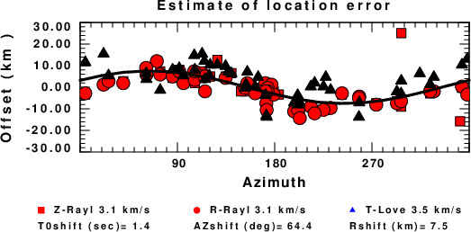 A check on the assumed source location is possible by looking at the time shifts between the observed and predicted traces. The time shifts for waveform matching arise for several reasons: