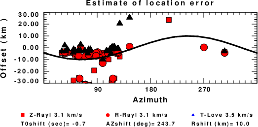 A check on the assumed source location is possible by looking at the time shifts between the observed and predicted traces. The time shifts for waveform matching arise for several reasons:
