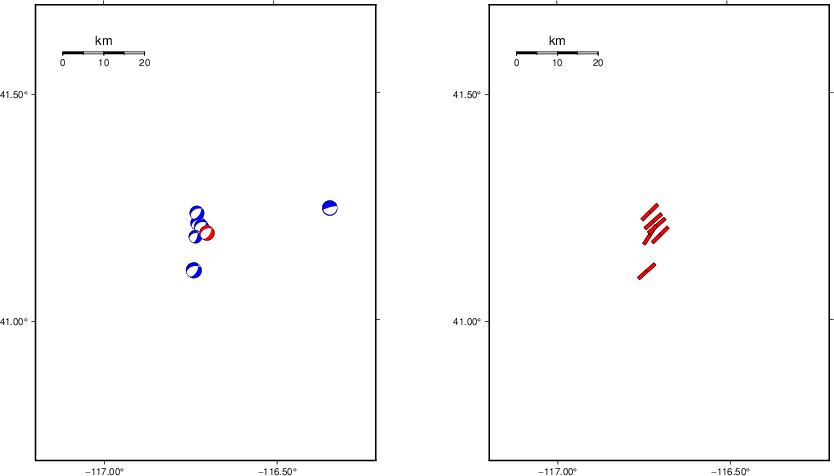 Moment Tensor Moment 3.204e+14 N-m Magnitude 3.60 Depth 8.5 km Percent DC 92% Half Duration - Catalog NN Data Source NN Contributor NN Nodal Planes Plane Strike Dip Rake NP1 237 37 -77 NP2 41 54 -100 Principal Axes Axis Value Plunge Azimuth T 3.265e+14 8 138 N -0.125e+14 8 47 P -3.140e+14 79 275 |