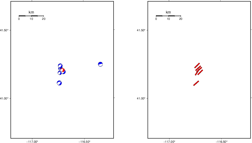 Moment Tensor Moment 1.036e+14 N-m Magnitude 3.28 Depth 8.2 km Percent DC 91% Half Duration - Catalog NN Data Source NN Contributor NN Nodal Planes Plane Strike Dip Rake NP1 227 31 -87 NP2 44 59 -92 Principal Axes Axis Value Plunge Azimuth T 1.065e+14 14 135 N -0.049e+14 1 45 P -1.005e+14 76 309 |