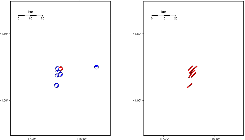 USGS/SLU Moment Tensor Solution ENS 2025/08/29 09:44:05.8 41.24 -116.69 8.8 3.6 Nevada Stations used: BK.BIGV BK.EAGL BK.MZTA BK.RAVE IM.NV31 IW.MFID IW.PLID NN.BEK UO.ADEL UO.JAZZ UO.PRONG US.BMO US.DUG US.ELK US.HWUT UU.BGU UU.CTU UU.FSU UU.SPU UU.TCU UW.IRON UW.TREE WW.CNCL WW.CTNW WW.IRMR Filtering commands used: cut o DIST/3.3 -30 o DIST/3.3 +60 rtr taper w 0.1 hp c 0.04 n 3 lp c 0.07 n 3 Best Fitting Double Couple Mo = 2.02e+21 dyne-cm Mw = 3.47 Z = 10 km Plane Strike Dip Rake NP1 260 55 -45 NP2 20 55 -135 Principal Axes: Axis Value Plunge Azimuth T 2.02e+21 0 320 N 0.00e+00 35 50 P -2.02e+21 55 230 Moment Tensor: (dyne-cm) Component Value Mxx 9.01e+20 Mxy -1.33e+21 Mxz 6.23e+20 Myy 4.40e+20 Myz 7.21e+20 Mzz -1.34e+21 ############## ###################--- T #####################----- ######################----- ###########################------- ############################-------- ################-------------##------- ###########-------------------######---- #######-----------------------#########- ######-------------------------########### ####---------------------------########### ##----------------------------############ #----------------------------############# ----------- --------------############ ----------- P -------------############# ---------- ------------############# -----------------------############# --------------------############## -----------------############# --------------############## --------############## ############## Global CMT Convention Moment Tensor: R T P -1.34e+21 6.23e+20 -7.21e+20 6.23e+20 9.01e+20 1.33e+21 -7.21e+20 1.33e+21 4.40e+20 Details of the solution is found at http://www.eas.slu.edu/eqc/eqc_mt/MECH.NA/20250829094405/index.html |