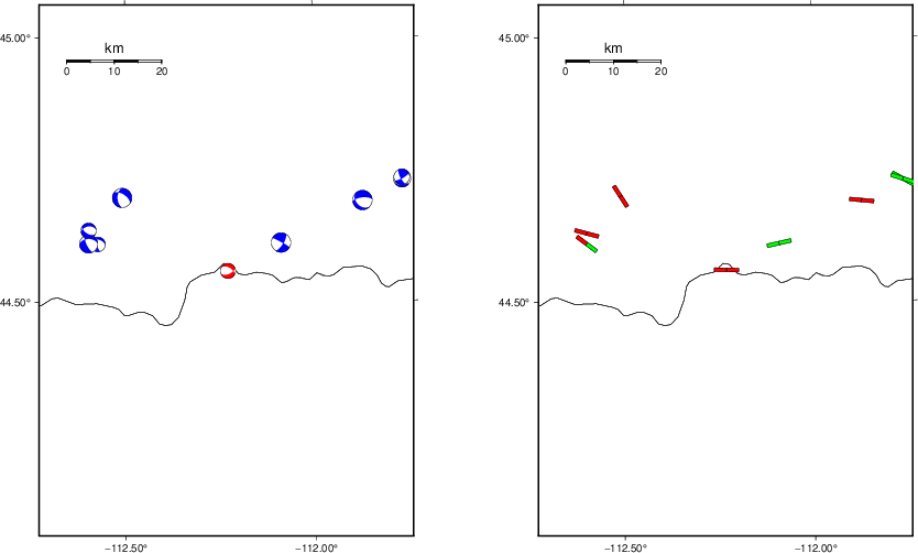 USGS/SLU Moment Tensor Solution ENS 2025/09/08 01:43:16.0 44.56 -112.23 10.2 3.4 Montana Stations used: IE.BCYI IW.DLMT IW.FLWY IW.FXWY IW.LOHW IW.MFID IW.MOOW MB.BCMT MB.BNMT MB.CPMT MB.ECMT MB.FCMT MB.JTMT MB.LIMT MB.LRM MB.SMMT MB.WCMT US.BOZ US.HLID US.MSO WY.YFT WY.YHB WY.YHL WY.YNE Filtering commands used: cut o DIST/3.3 -40 o DIST/3.3 +50 rtr taper w 0.1 hp c 0.03 n 3 lp c 0.10 n 3 Best Fitting Double Couple Mo = 1.76e+21 dyne-cm Mw = 3.43 Z = 8 km Plane Strike Dip Rake NP1 67 54 -127 NP2 300 50 -50 Principal Axes: Axis Value Plunge Azimuth T 1.76e+21 2 183 N 0.00e+00 29 92 P -1.76e+21 60 277 Moment Tensor: (dyne-cm) Component Value Mxx 1.74e+21 Mxy 1.41e+20 Mxz -1.61e+20 Myy -4.18e+20 Myz 7.46e+20 Mzz -1.33e+21 ############## ###################### ############################ ############################## ###-----------#################### --------------------################ -------------------------############# ----------------------------###########- -------------------------------#######-- ------------ ------------------#####---- ------------ P --------------------##----- ------------ --------------------#------ ---------------------------------####----- ------------------------------#######--- ---------------------------##########--- -----------------------##############- ####------------#################### ################################## ############################## ############################ ######## ########### #### T ####### Global CMT Convention Moment Tensor: R T P -1.33e+21 -1.61e+20 -7.46e+20 -1.61e+20 1.74e+21 -1.41e+20 -7.46e+20 -1.41e+20 -4.18e+20 Details of the solution is found at http://www.eas.slu.edu/eqc/eqc_mt/MECH.NA/20250908014316/index.html |