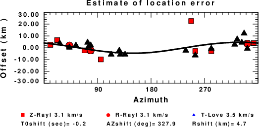 A check on the assumed source location is possible by looking at the time shifts between the observed and predicted traces. The time shifts for waveform matching arise for several reasons:
