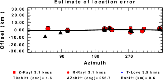 A check on the assumed source location is possible by looking at the time shifts between the observed and predicted traces. The time shifts for waveform matching arise for several reasons:
