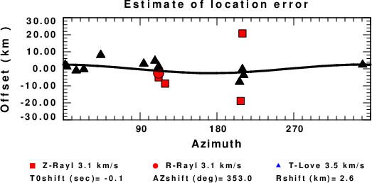 A check on the assumed source location is possible by looking at the time shifts between the observed and predicted traces. The time shifts for waveform matching arise for several reasons: