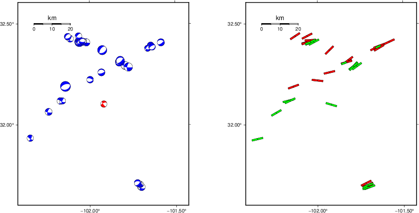 USGS/SLU Moment Tensor Solution ENS 2025/09/25 23:34:41.0 32.10 -101.92 7.7 3.4 Texas Stations used: 4O.AT01 4O.DBL01 4O.EE01 4O.EE03 4O.EE04 4O.EE05 4O.FOR01 4O.GV01 4O.MBBB2 4O.MID01 4O.MID03 4O.OE02 4O.SM02 4O.VW02 TX.MB08 TX.MB09 TX.MB10 TX.MB12 TX.MB13 TX.MB15 TX.MB15D TX.MB18 TX.MB19 TX.MB21 TX.MB23 Filtering commands used: cut o DIST/3.3 -30 o DIST/3.3 +30 rtr taper w 0.1 hp c 0.05 n 3 lp c 0.15 n 3 Best Fitting Double Couple Mo = 8.51e+20 dyne-cm Mw = 3.22 Z = 6 km Plane Strike Dip Rake NP1 145 75 -30 NP2 243 61 -163 Principal Axes: Axis Value Plunge Azimuth T 8.51e+20 9 197 N 0.00e+00 57 301 P -8.51e+20 32 101 Moment Tensor: (dyne-cm) Component Value Mxx 7.39e+20 Mxy 3.43e+20 Mxz -5.51e+19 Myy -5.26e+20 Myz -4.11e+20 Mzz -2.13e+20 ############## ###################### --########################## ----########################## ------############################ --------##################-------### ----------##########------------------ ------------#####----------------------- ---------------------------------------- ------------###--------------------------- ---------#######-------------------------- -------##########----------------- ----- ------############---------------- P ----- ----###############-------------- ---- --##################-------------------- -####################----------------- #####################--------------- ######################------------ ######################-------- ####### ##############---- #### T ############### ########### Global CMT Convention Moment Tensor: R T P -2.13e+20 -5.51e+19 4.11e+20 -5.51e+19 7.39e+20 -3.43e+20 4.11e+20 -3.43e+20 -5.26e+20 Details of the solution is found at http://www.eas.slu.edu/eqc/eqc_mt/MECH.NA/20250925233441/index.html |