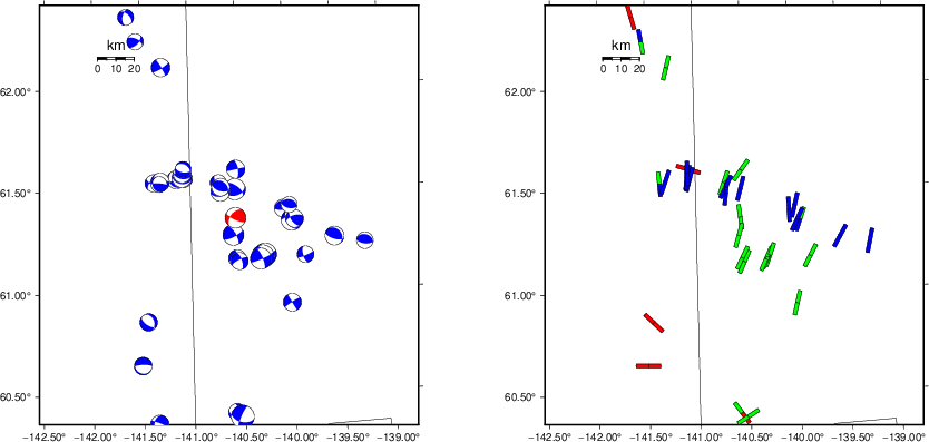 USGS/SLU Moment Tensor Solution ENS 2025/10/05 11:20:03.0 61.37 -140.55 13.3 4.6 Yukon, Canada Stations used: AK.BAE AK.BARN AK.BERG AK.BESE AK.BMR AK.DHY AK.DIV AK.DOT AK.EYAK AK.FID AK.GLB AK.GLI AK.HARP AK.HIN AK.ISLE AK.J25K AK.K24K AK.KLU AK.KNK AK.L26K AK.LOGN AK.M26K AK.MCAR AK.MESA AK.P23K AK.PAX AK.PIN AK.PWL AK.RAG AK.RIDG AK.SCRK AK.TGL AK.VRDI AK.WAT6 AK.WAX CN.DAWY CN.HYT CN.PLBC CN.WHY NY.MAYO Filtering commands used: cut o DIST/3.3 -40 o DIST/3.3 +50 rtr taper w 0.1 hp c 0.03 n 3 lp c 0.10 n 3 Best Fitting Double Couple Mo = 1.04e+23 dyne-cm Mw = 4.61 Z = 11 km Plane Strike Dip Rake NP1 117 75 138 NP2 220 50 20 Principal Axes: Axis Value Plunge Azimuth T 1.04e+23 40 70 N 0.00e+00 46 280 P -1.04e+23 16 174 Moment Tensor: (dyne-cm) Component Value Mxx -8.78e+22 Mxy 3.01e+22 Mxz 4.39e+22 Myy 5.29e+22 Myz 4.49e+22 Mzz 3.49e+22 -------------- ---------------------- ---------------------####### -----------------############# ---------------################### --------------###################### #------------######################### ####--------################## ####### ######-----################### T ####### #########--#################### ######## ##########--############################## #########------########################### ########----------######################## ######---------------################### ######-------------------############### #####-------------------------######## ####-------------------------------- ###------------------------------- #----------------------------- #-------------- ---------- ------------ P ------- -------- --- Global CMT Convention Moment Tensor: R T P 3.49e+22 4.39e+22 -4.49e+22 4.39e+22 -8.78e+22 -3.01e+22 -4.49e+22 -3.01e+22 5.29e+22 Details of the solution is found at http://www.eas.slu.edu/eqc/eqc_mt/MECH.NA/20251005112003/index.html |