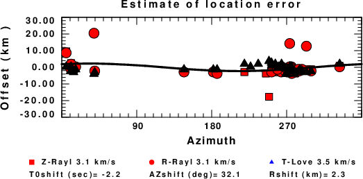 A check on the assumed source location is possible by looking at the time shifts between the observed and predicted traces. The time shifts for waveform matching arise for several reasons: