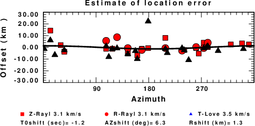 A check on the assumed source location is possible by looking at the time shifts between the observed and predicted traces. The time shifts for waveform matching arise for several reasons: