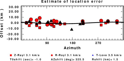 A check on the assumed source location is possible by looking at the time shifts between the observed and predicted traces. The time shifts for waveform matching arise for several reasons: