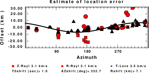 A check on the assumed source location is possible by looking at the time shifts between the observed and predicted traces. The time shifts for waveform matching arise for several reasons: