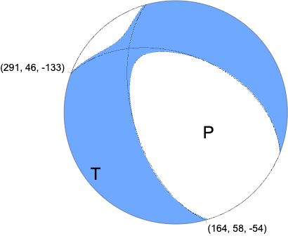 W-phase Moment Tensor (Mww) Moment 1.412e+17 N-m Magnitude 5.37 Mww Depth 35.5 km Percent DC 92% Half Duration 0.50 s Catalog US Data Source US Contributor US Nodal Planes Plane Strike Dip Rake NP1 291 46 -133 NP2 164 58 -54 Principal Axes Axis Value Plunge Azimuth T 1.382e+17 7 230 N 0.057e+17 30 324 P -1.439e+17 59 128 |