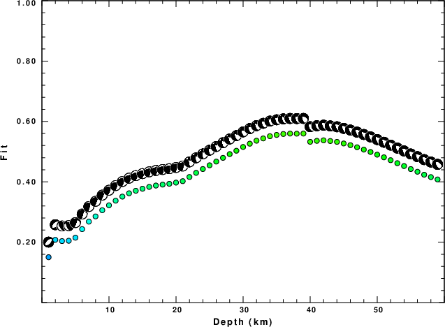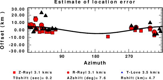 A check on the assumed source location is possible by looking at the time shifts between the observed and predicted traces. The time shifts for waveform matching arise for several reasons: