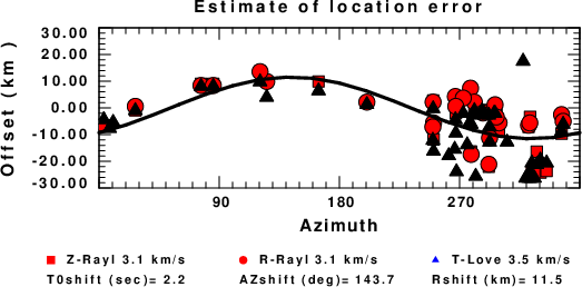 A check on the assumed source location is possible by looking at the time shifts between the observed and predicted traces. The time shifts for waveform matching arise for several reasons: