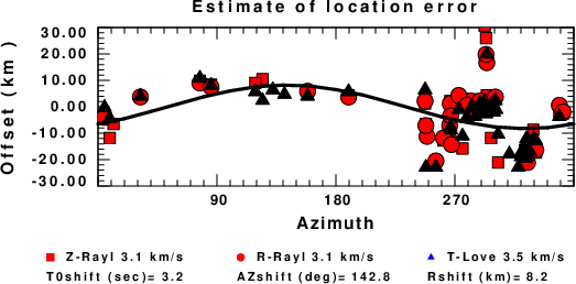 A check on the assumed source location is possible by looking at the time shifts between the observed and predicted traces. The time shifts for waveform matching arise for several reasons: