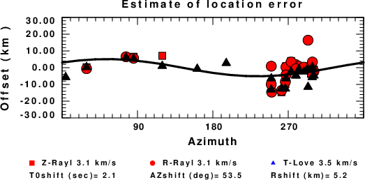 A check on the assumed source location is possible by looking at the time shifts between the observed and predicted traces. The time shifts for waveform matching arise for several reasons: