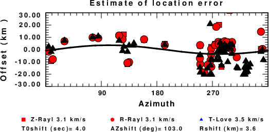 A check on the assumed source location is possible by looking at the time shifts between the observed and predicted traces. The time shifts for waveform matching arise for several reasons: