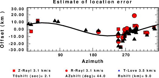 A check on the assumed source location is possible by looking at the time shifts between the observed and predicted traces. The time shifts for waveform matching arise for several reasons: