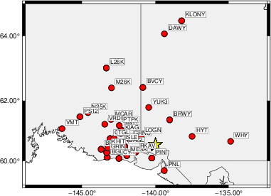 ENS 2025/12/07 16:56:28.0 60.55 -140.00 10.0 4.4 112 km N of Yakutat
