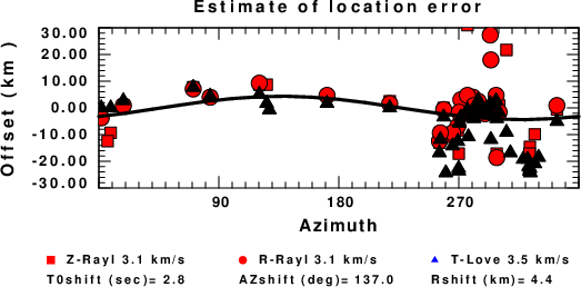 A check on the assumed source location is possible by looking at the time shifts between the observed and predicted traces. The time shifts for waveform matching arise for several reasons: