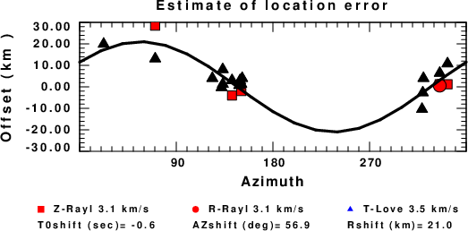 A check on the assumed source location is possible by looking at the time shifts between the observed and predicted traces. The time shifts for waveform matching arise for several reasons: