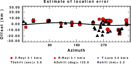 A check on the assumed source location is possible by looking at the time shifts between the observed and predicted traces. The time shifts for waveform matching arise for several reasons: