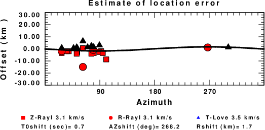 A check on the assumed source location is possible by looking at the time shifts between the observed and predicted traces. The time shifts for waveform matching arise for several reasons: