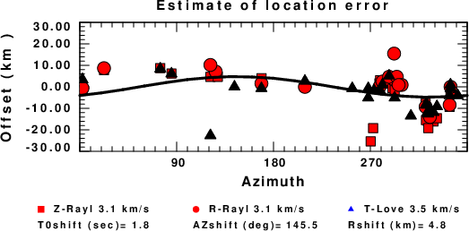 A check on the assumed source location is possible by looking at the time shifts between the observed and predicted traces. The time shifts for waveform matching arise for several reasons: