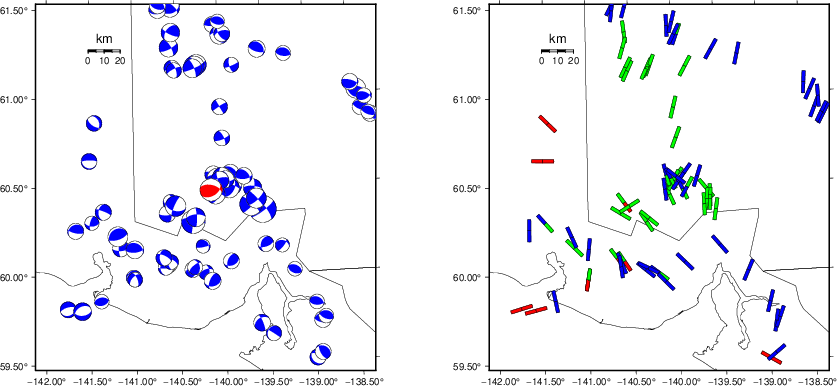 W-phase Moment Tensor (Mww) Moment 4.157e+17 N-m Magnitude 5.68 Mww Depth 11.5 km Percent DC 79% Half Duration 1.50 s Catalog US Data Source US Contributor US Nodal Planes Plane Strike Dip Rake NP1 272 44 110 NP2 66 49 72 Principal Axes Axis Value Plunge Azimuth T 4.369e+17 76 269 N -0.461e+17 13 77 P -3.908e+17 3 168 |