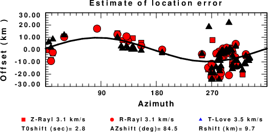 A check on the assumed source location is possible by looking at the time shifts between the observed and predicted traces. The time shifts for waveform matching arise for several reasons:
