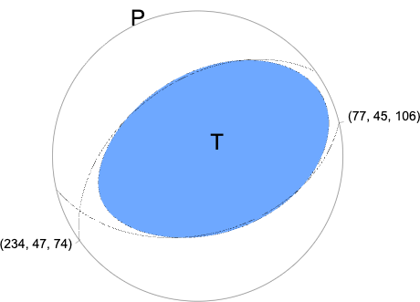 W-phase Moment Tensor (Mww) Moment 1.010e+17 N-m Magnitude 5.27 Mww Depth 11.5 km Percent DC 82% Half Duration 0.50 s Catalog US Data Source US Contributor US Nodal Planes Plane Strike Dip Rake NP1 234 47 74 NP2 77 45 106 Principal Axes Axis Value Plunge Azimuth T 1.054e+17 79 71 N -0.095e+17 11 245 P -0.959e+17 1 335 |