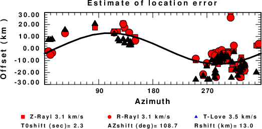 A check on the assumed source location is possible by looking at the time shifts between the observed and predicted traces. The time shifts for waveform matching arise for several reasons: