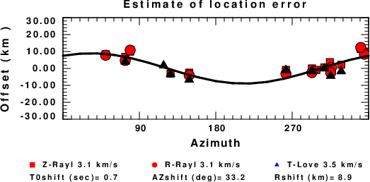 A check on the assumed source location is possible by looking at the time shifts between the observed and predicted traces. The time shifts for waveform matching arise for several reasons: