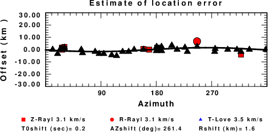 A check on the assumed source location is possible by looking at the time shifts between the observed and predicted traces. The time shifts for waveform matching arise for several reasons: