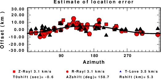 A check on the assumed source location is possible by looking at the time shifts between the observed and predicted traces. The time shifts for waveform matching arise for several reasons:
