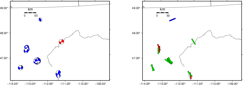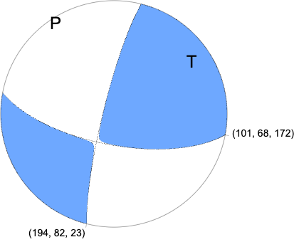 Regional Moment Tensor (Mwr) Moment 2.753e+15 N-m Magnitude 4.23 Mwr Depth 23.0 km Percent DC 99% Half Duration - Catalog US Data Source US Contributor US Nodal Planes Plane Strike Dip Rake NP1 194 82 23 NP2 101 68 172 Principal Axes Axis Value Plunge Azimuth T 2.757e+15 21 59 N -0.007e+15 66 212 P -2.750e+15 10 325 |