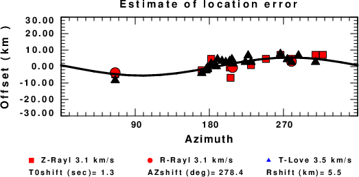 A check on the assumed source location is possible by looking at the time shifts between the observed and predicted traces. The time shifts for waveform matching arise for several reasons: