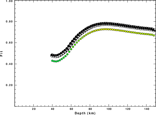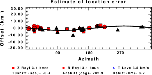 A check on the assumed source location is possible by looking at the time shifts between the observed and predicted traces. The time shifts for waveform matching arise for several reasons: