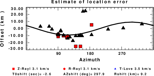 A check on the assumed source location is possible by looking at the time shifts between the observed and predicted traces. The time shifts for waveform matching arise for several reasons: