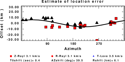 A check on the assumed source location is possible by looking at the time shifts between the observed and predicted traces. The time shifts for waveform matching arise for several reasons: