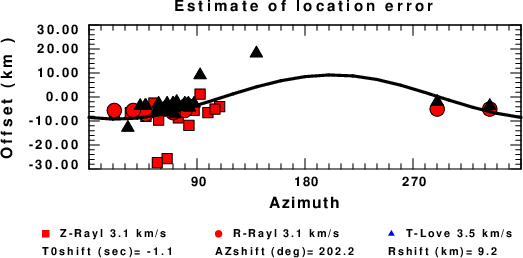 A check on the assumed source location is possible by looking at the time shifts between the observed and predicted traces. The time shifts for waveform matching arise for several reasons: